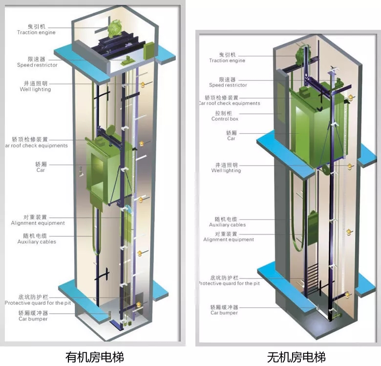 1、無機房的優(yōu)點是節(jié)省空間,可以只在主機的下方做一個檢修平臺。