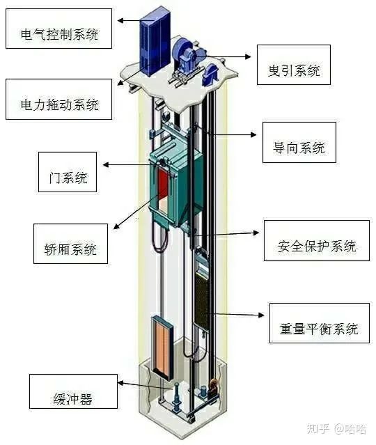 七、電氣控制系統(tǒng):電梯的電氣控制系統(tǒng)由控制裝置,操縱裝置,平層裝置,和位置顯示裝置等部分組成。其中控制裝置根據(jù)電梯的運行邏輯功能要求,控制電梯的運行,設(shè)置在機房中的控制柜上。操縱裝置是由轎廂內(nèi)的按鈕箱和廳門的召喚箱按鈕來操縱電梯的運行的。平層裝置是發(fā)出平層控制信號,使電梯轎廂準(zhǔn)確平層的控制裝置。所謂平層,是指轎廂在接近某一樓層的??空緯r,欲使轎廂地坎與廳門地坎達(dá)到同一平面的操作。位置顯示裝置是用來顯示電梯所在樓層位置的轎內(nèi)和廳門的指示燈,廳門指示燈還用尖頭指示電梯的運行方向。