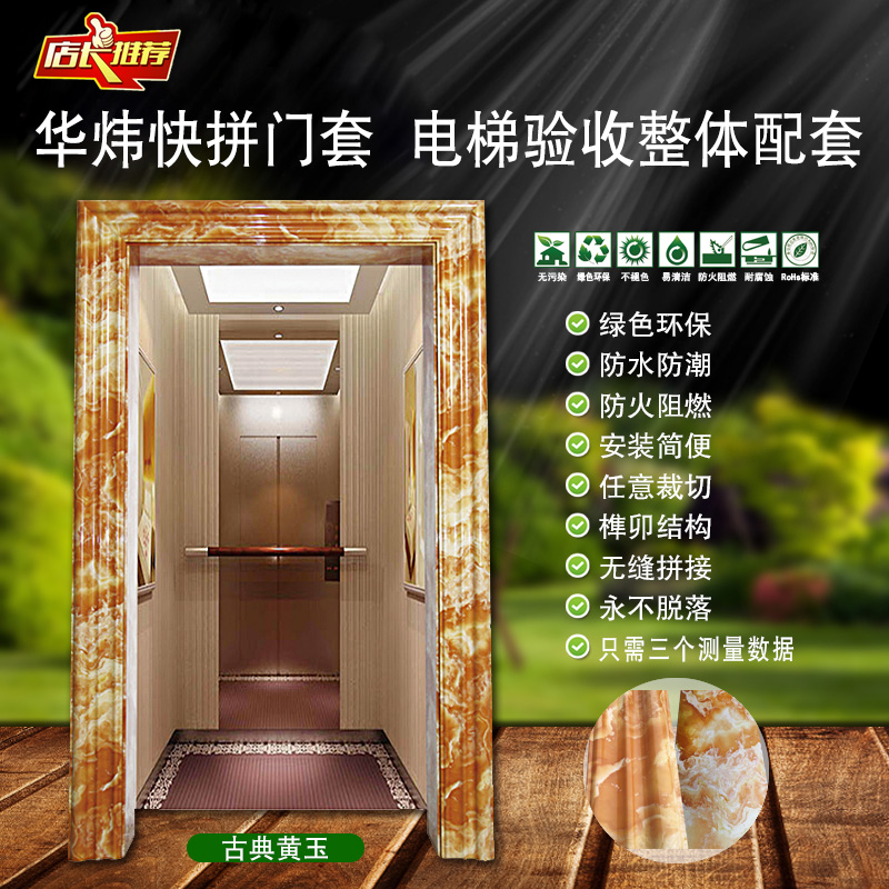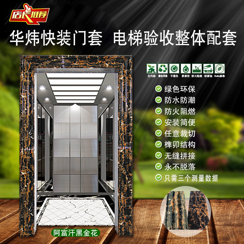 電梯環(huán)?!翱煅b”門套,是繼電梯無線五方對(duì)講系統(tǒng)后的又一創(chuàng)新性的電梯配套產(chǎn)品,電梯快裝門套綠色環(huán)保、防水防潮、防火阻燃、榫卯結(jié)構(gòu)、任意切割、無縫快拼、絕不脫落。電梯門套已通過國(guó)際標(biāo)準(zhǔn)UL94-2013阻燃檢測(cè)和鉛、汞、苯等六種重金屬含量檢測(cè),完全符合國(guó)家環(huán)境保護(hù)要求。適合用于家庭、辦公室、行政樓、賓館、飯店、酒吧、KTV、休閑會(huì)所、醫(yī)院等場(chǎng)所的裝飾工程??芍苯影惭b在毛胚墻面,減少了施工成本,前期只需簡(jiǎn)單測(cè)量三個(gè)數(shù)據(jù),提高施工效率。安裝后流光溢彩、富麗堂皇、雍容典雅,大幅度提升樓宇品質(zhì)。